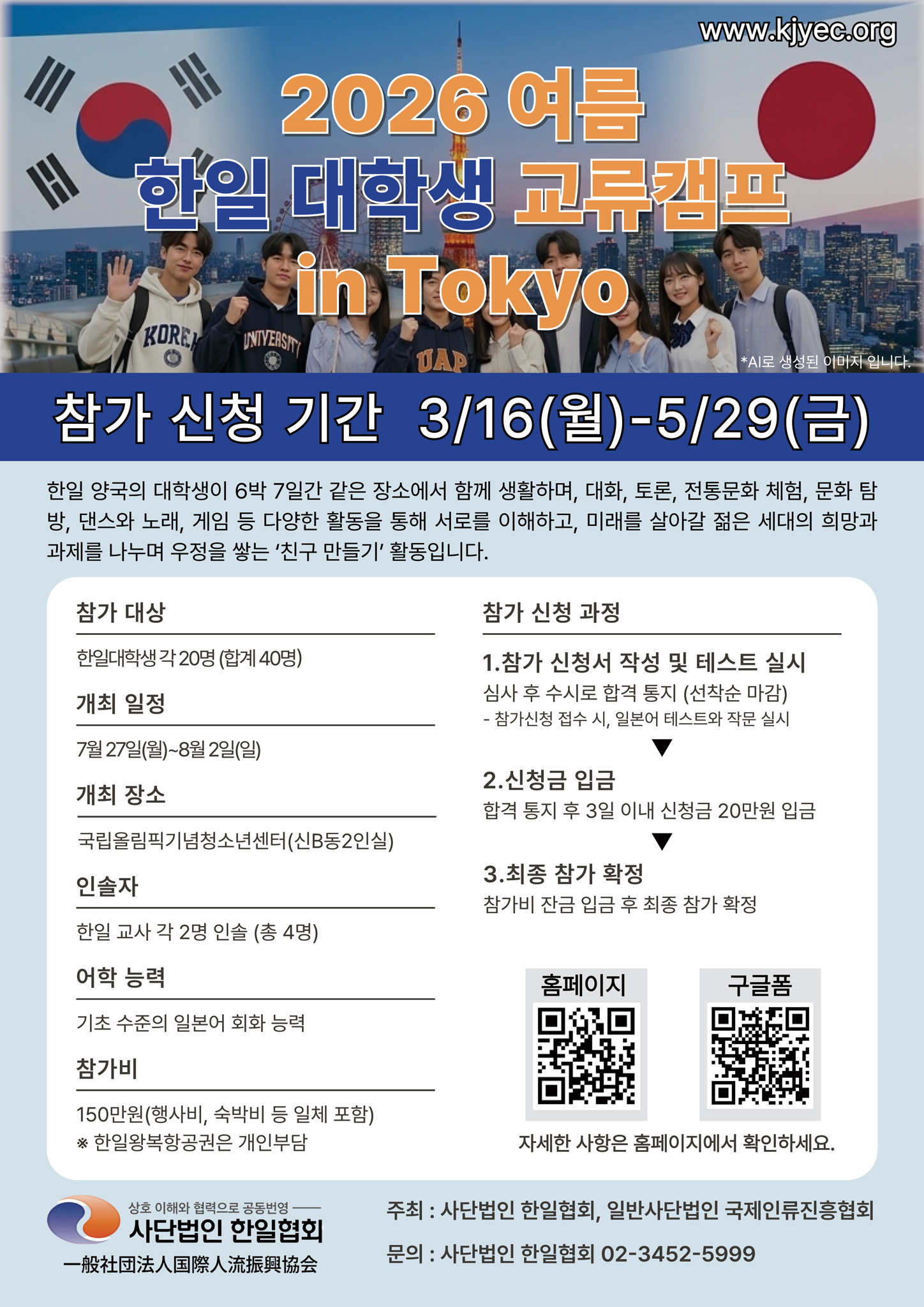 2026 ¿©¸§ ÇÑÀÏ ´ëÇлý ±³·ùÄ·ÇÁ in Tokyo Âü°¡ÀÚ¸¦ ¸ðÁýÇÕ´Ï´Ù.